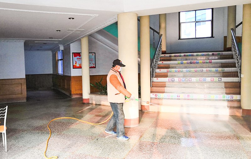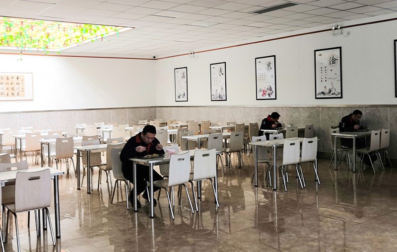 公司食堂中央空調系統全部關閉,所有就餐人員實行分批式,單人、單桌,排隊就餐間距1米以外,安全中心就餐前與就餐后對餐廳進行消毒,確保復工人員就餐安全。