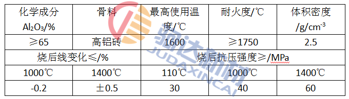 表1 高強(qiáng)低水泥性澆注料能參數(shù)