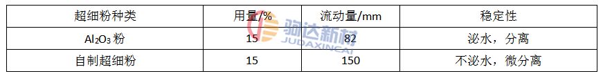 超細粉在自流澆注料中除了填充骨料堆積的空隙外,更重要的是與水形成連續的流體,減少顆粒間的直接接觸,從而使物料在其自身重力作用下可流動。超細粉的種類不同,其性能也不同。
